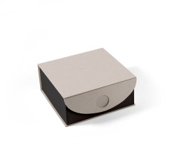 • Emballage carré en carton écologique en deux parties avec rabat et fermeture à bouton.